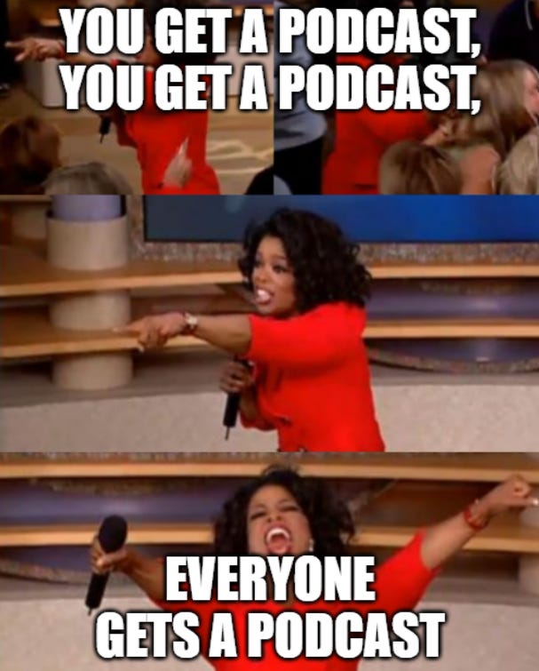 PSA: As a nice little side hustle, you can sign up with Pinwheel as an affiliate to literally earn money just sending links to people and telling them they should have a podcast. What a time to be alive.